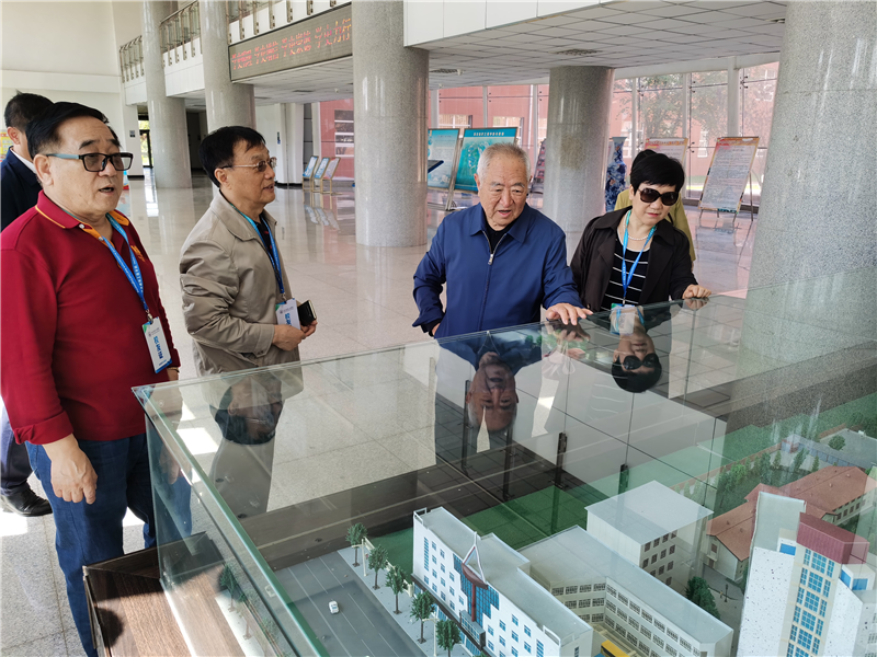 5月18日上午,在黨(校)辦徐海濤、劉曉波二位老師的陪同下,老教師及校友們乘坐觀光車先后參觀了老校區沙盤、魯班精神雕像、孺子牛廣場、南大門、宿舍區,并在北門合影留念。