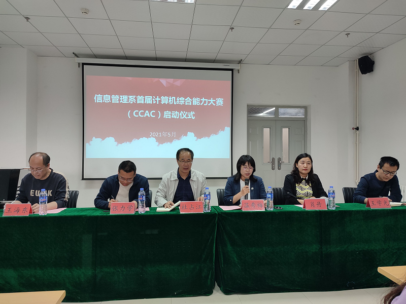 為提高學生的學習積極性、創新意識和勇于實踐的科學精神,本著以賽促學、以賽促教、以賽促創的原則,信息管理系于5月18日舉辦首屆計算機綜合能力競賽(CCAC)啟動儀式,出席會議的領導有系黨總支書記杜占江、系主任溫秀梅、系黨總支副書記張力學、系信息技術教研室主任王海東、實驗室主任王學光。會議由系副主任肖丹主持。