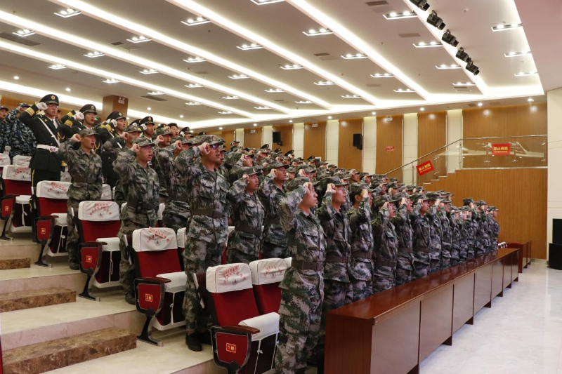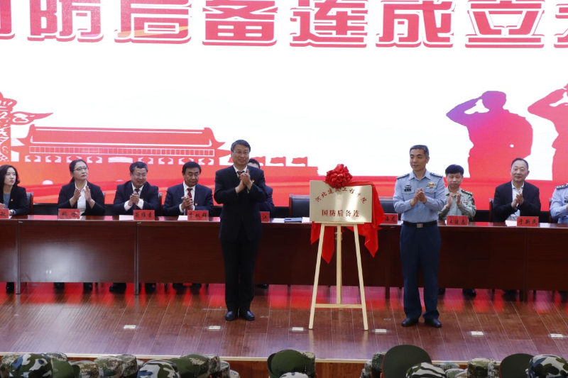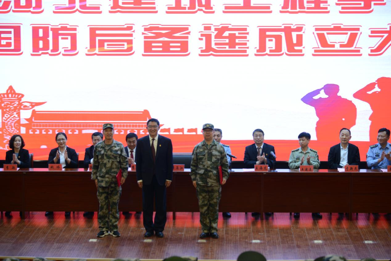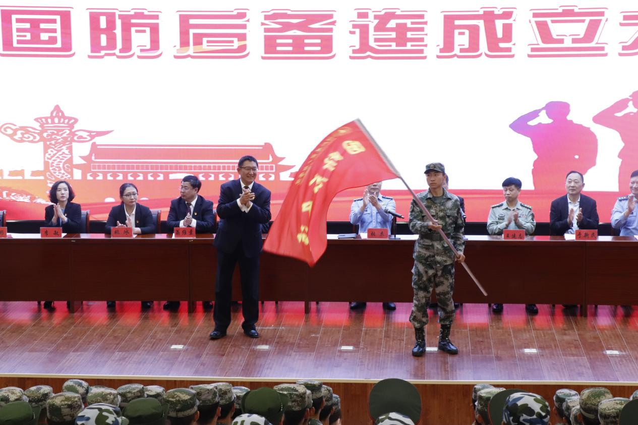 大會在雄壯的國歌聲中拉開序幕。副校長趙海軍宣讀《2138cn太陽集團國防后備連成立決定》。張杰司令員和王海龍書記為國防后備連揭牌。師涌江校長為國防后備連授旗。