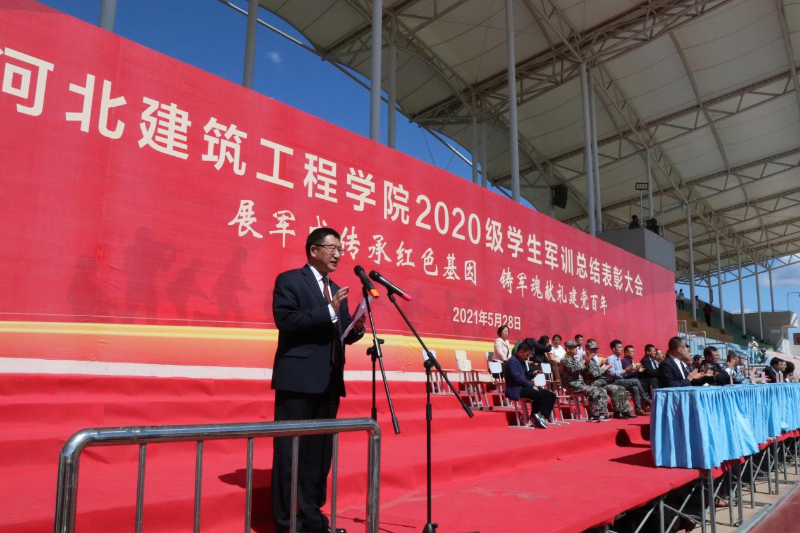 5月28日上午,我校2020級學生軍訓總結表彰大會在田徑運動場舉行。校領導王海龍、師涌江、李雙群、翁維素、姚冰、張立群、李敏、趙海軍,張家口市橋東區人武部部長張睿出席大會。大會由副校長趙海軍主持,各部門及院系負責人、教師代表、全體退役大學生教官和2020級全體學生參加大會。