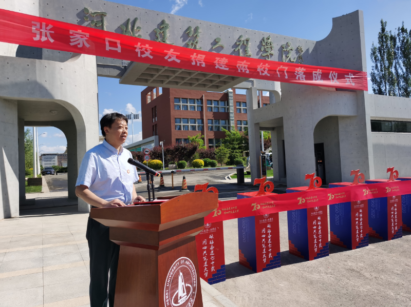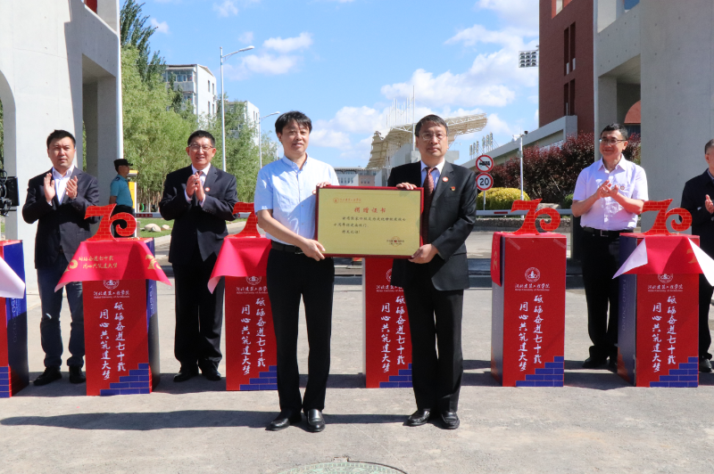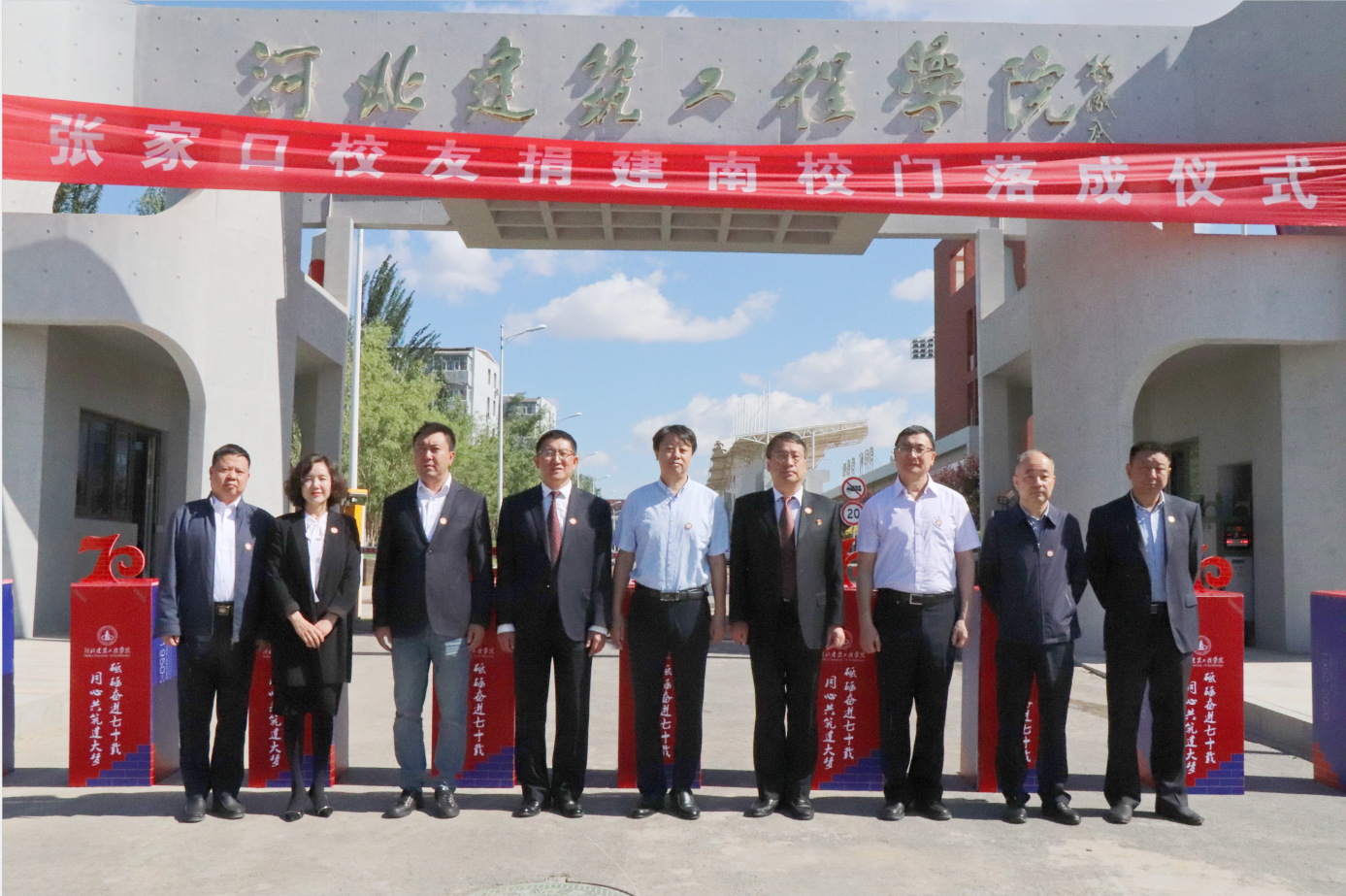 王海龍書記、師涌江校長(zhǎng)及趙廣杰、郭小杰等六位校友代表共同為南校門落成剪彩,并由王海龍書記向張家口校友集體頒發(fā)捐贈(zèng)牌匾。