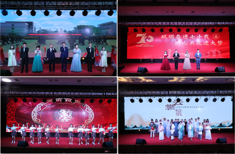 演出在師生合唱《夢想從這里起航》雄壯豪邁的歌聲中拉開帷幕。音樂快板《夸建院》用歡快的形式表達了我校學生對母校的由衷贊美。時裝秀表演《云裳繪建》由我校退休教師和在校生共同完成,全部服裝均由學生自行設計,完美融合了中西方經典建筑元素,充分展現了我校專業特色和師生風采,現場掌聲雷動。