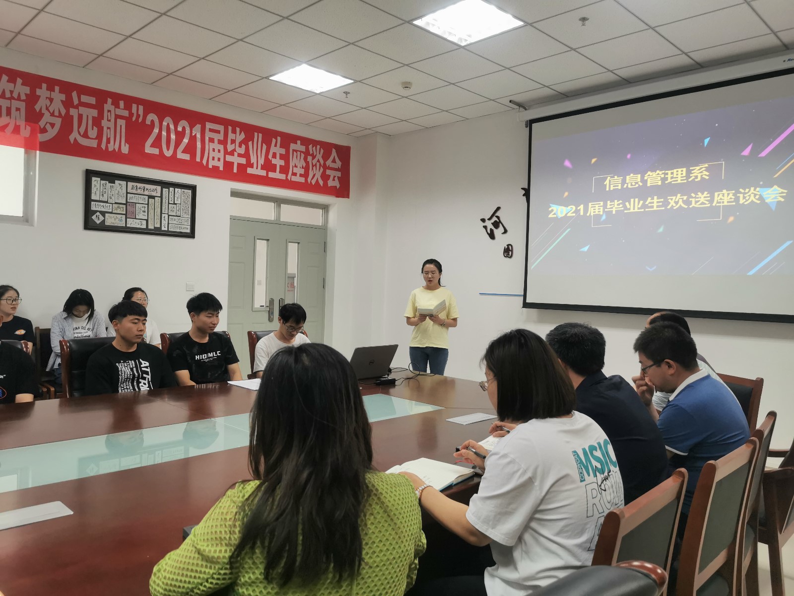 6月18日,在畢業生即將離校的前夕,一場情誼濃濃的師生座談會在圖書館如期舉行。座談會以“感懷師恩、筑夢遠航”為主題,信息管理系全體教師和2021屆35名畢業生參加了師生座談會,會議由黨總支副書記張力學主持。