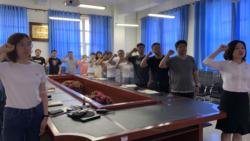 最后,在申靜同志帶領下,全體教師黨員重溫入黨誓詞。