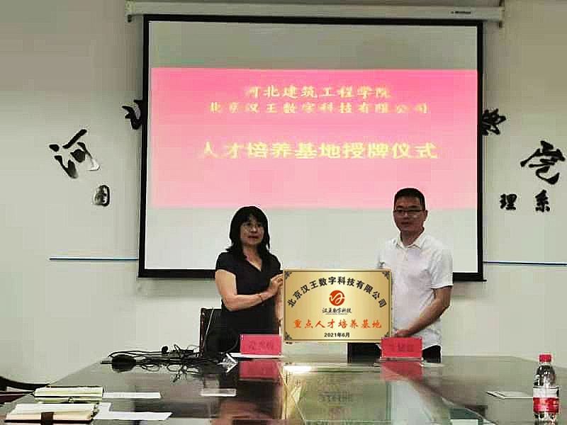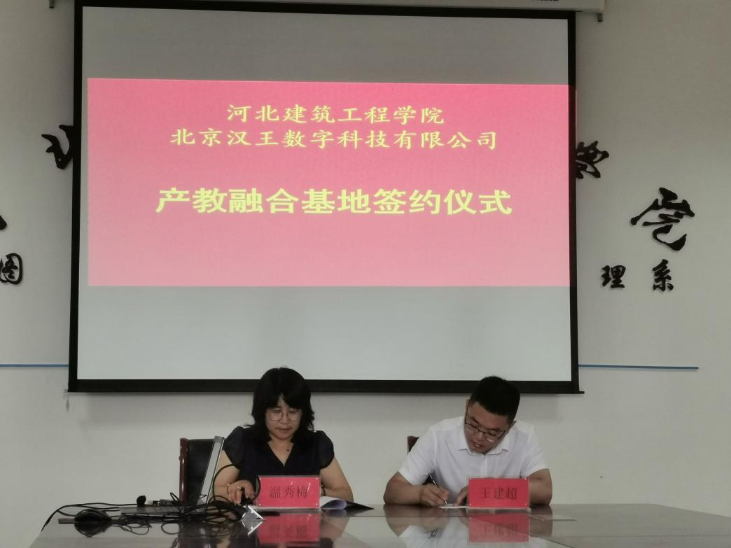 隨后,信息管理系主任溫秀梅與北京漢王數字科技有限公司人事部經理王建超簽訂了產教融合校企合作協議,并舉行了“2138cn太陽集團產教融合基地”、“北京漢王數字科技有限公司重點人才培養基地”授牌儀式。