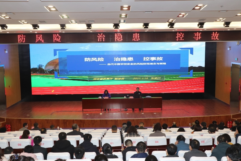 為認(rèn)真學(xué)習(xí)風(fēng)險分級管控和隱患排查治理知識,提升風(fēng)險辨識和隱患管控能力,深入推進(jìn)我校“雙控”機制建設(shè),積極構(gòu)建平安校園,我校于3月18日舉辦“雙控”機制建設(shè)培訓(xùn)會,特邀河北省教育廳學(xué)校安全工作處趙連云主任做專題講座。培訓(xùn)會由李敏副校長主持,我校科級以上黨政干部、各單位安全員、教研室和實驗室主任、特種設(shè)備管理人員和使用人員、駐校其他單位負(fù)責(zé)人及校內(nèi)主管人;張家口市教育局各縣區(qū)主管局長及安全科長、市直屬學(xué)校主管校長和安全主任、經(jīng)開區(qū)中小學(xué)校長近400余人參加了培訓(xùn)。