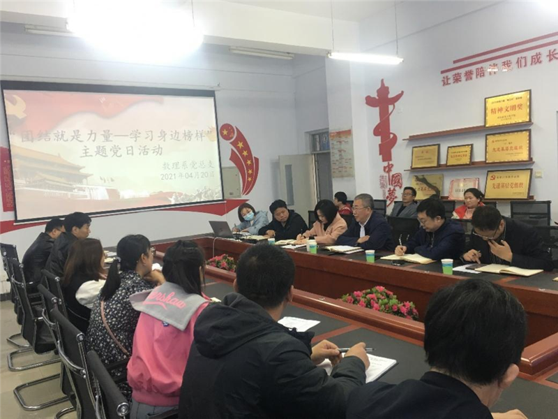 數(shù)理系黨總支4月20日下午在崇德樓B301會議室開展了“團(tuán)結(jié)就是力量—學(xué)習(xí)身邊榜樣”主題黨日活動,校紀(jì)委書記徐獻(xiàn)彬、數(shù)理系黨政領(lǐng)導(dǎo)班子及全體黨員參加了本次活動。