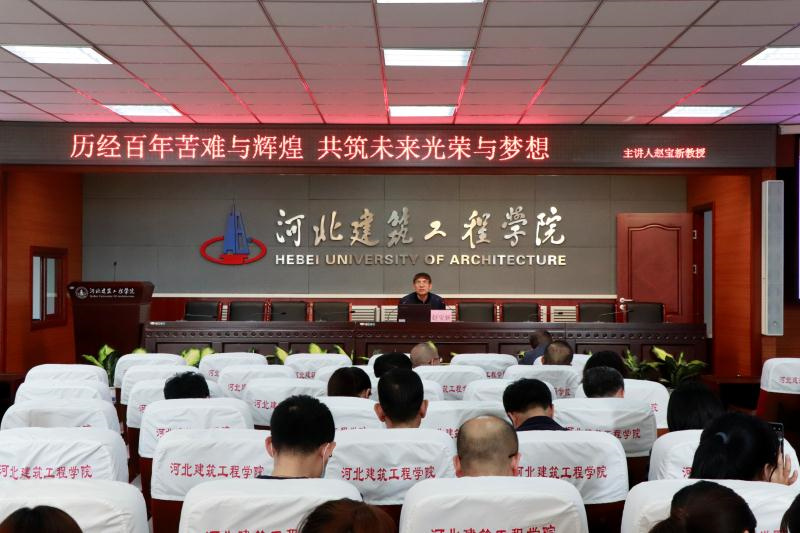按照學校黨委黨史學習教育工作安排,4月23日下午,我校社科部教師趙寶新教授以《歷經百年苦難與輝煌 共筑未來光榮與夢想》為主題,在崇德樓A306會議室為學校全體處級干部和黨支部書記上了一節生動精彩的專題講座。