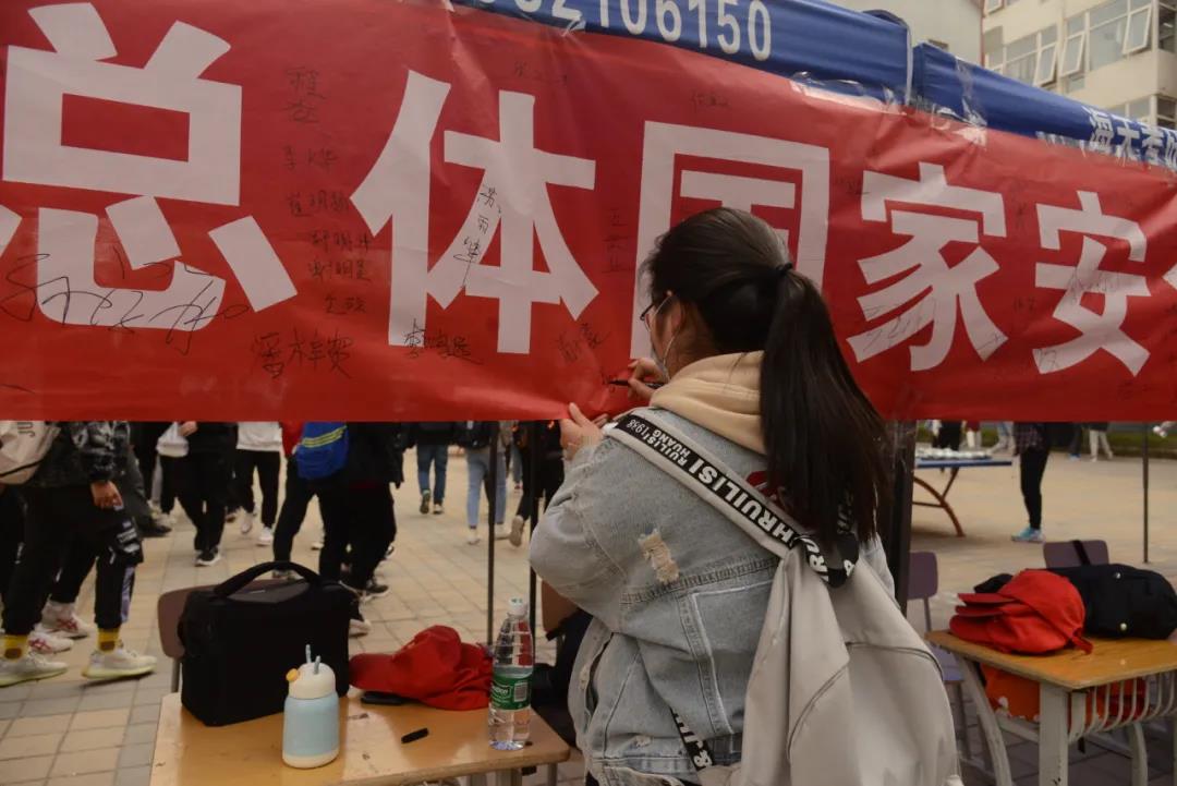 各院系組織學生集中觀看了“千萬師生同上一堂國家安全教育課”、“首屆全國高校學生國家安全素養(yǎng)展示活動”,并積極發(fā)動學生參與“全國高校學生國家安全知識線上競賽”。我校部分院系同學們在觀看教育課后,紛紛寫下了自己的感想,表達了自己對總體國家安全觀的認識。各班級還積極開展主題班會活動,讓總體國家安全觀入腦入心。部分院系還開展關于安全教育的講座,將黨史學習教育與國家安全教育相結合,使同學們更加真切感受到了國家安全的重要性。我校還組織學生發(fā)起“全面踐行總體國家安全觀 營造慶祝建黨百年良好氛圍”簽名活動,得到了同學們的積極響應。
