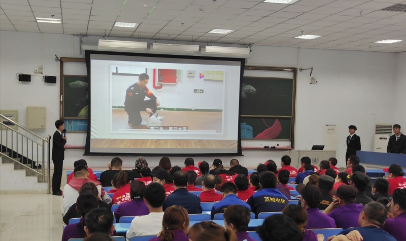 在明德樓110教室,我校大學生安全教育管理委員會顧潤濤同學為在場的工作人員進行了消防安全知識培訓,深入講解了火災預防常識及發生火災時的注意事項、火場逃生過程中應注意的事項,并就如何報火警、如何撲滅初起火災以及火場中如何正確自救互救等內容進行了全面闡述,最后根據培訓對象的工作性質,重點講解了宿舍和餐廳防火知識及技能。