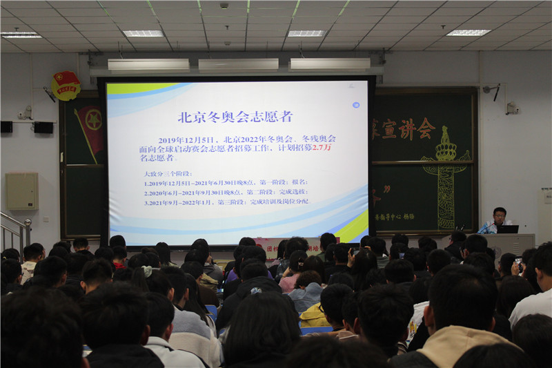 為深入貫徹落實(shí)習(xí)近平總書記關(guān)于籌辦冬奧會和冬殘奧會重要指示精神,積極響應(yīng)團(tuán)省委、團(tuán)市委、市志愿服務(wù)指導(dǎo)中心關(guān)于做好“2020年迎冬奧城市志愿者招募工作”的號召,弘揚(yáng)“奉獻(xiàn)、友愛、互助、進(jìn)步”的青年志愿精神,宣傳冬奧知識,傳播冬奧文化,推進(jìn)我校志愿服務(wù)體系建設(shè)。校團(tuán)委于11月11日晚7點(diǎn)在明德樓110教室舉辦了第二十四期團(tuán)校培訓(xùn)第一講“奧林匹克與志愿服務(wù)”知識講座,由張家口志愿服務(wù)指導(dǎo)中心楊旸擔(dān)任本場講座的主講人。