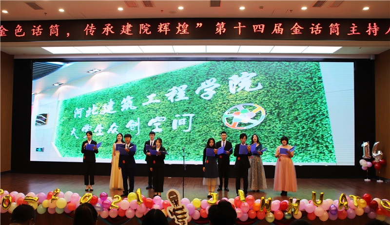 為慶祝我校建校70周年,豐富大學生的課余生活,搭建展示自我舞臺,11月15日下午,第十四屆“點燃金色話筒,傳承建院輝煌”主持人大賽決賽在圖書館新能源交流中心舉辦。張家口市網絡廣播電視臺主持人梁甜女士、社科部韓仰熙老師、校團委張輝老師,各校級組織及院系學生會主席作為評委出席了本次大賽。