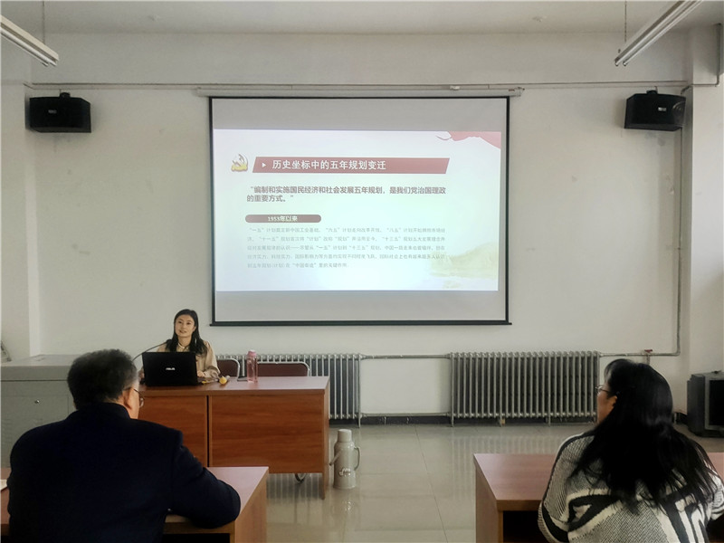 曹宇博士為與會師生們深入解讀了黨的十九屆五中全會精神。她首先介紹了中央全會的涵義和歷史坐標中的五年規劃變遷,從三個“百年”背景的角度解讀黨的十九屆五中全會的歷史背景,分析我國發展的SWOT(優勢、劣勢、機會、威脅),以2008年金融危機案例分析我國擴大內需的必要性與重要性,以疫情防控為切入點講解我國的社會治理能力。“十三五”時期,黨和國家事業取得全方位、開創性歷史成就,創造了新冠肺炎疫情防控重大戰略成果、在全球主要經濟體中率先實現經濟正增長、解決了千百年來絕對貧困問題等奇跡。這些成績的取得,最根本的是有習近平同志作為黨中央的核心、全黨的核心領航掌舵。