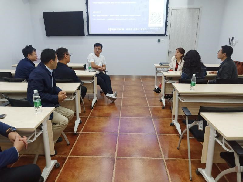 考察團首先到訪的是獨角獸企業(yè)-北京貍米科技公司總部,在貍米科技師資總監(jiān)張志永,校招總負責人王昭君,北京師資負責人何托楊的陪同參觀了貍米科技總部的相關設施,對該公司的運作機制有了進一步的了解。考察團與貍米科技相關負責人在教育理念、人才培養(yǎng)模式、員工培訓、企業(yè)文化打造等方面深入交換了意見。通過交流了解了彼此的優(yōu)勢與特色,并發(fā)現(xiàn)了彼此深入合作的諸多領域,初步達成了進一步產(chǎn)教研融合的愿景。