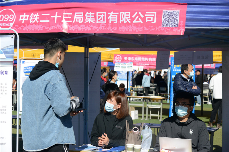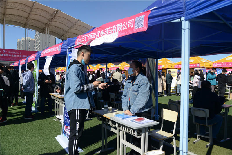 本次雙選會在設置工程施工、規劃設計、綜合服務區域的基礎上,增加了征兵宣傳區域,邀請張家口區武裝部進行宣傳動員,展示退役大學生青春風采。會場設立了就業指導服務中心、志愿服務點、院系工作點、醫療救治點、安全保衛點,提供簡歷指導、政策咨詢、手續辦理、廣播通知、撰寫打印等一站式服務店;特別設置了茶歇供應點,由建筑與藝術學院師生、半時光咖啡創業團隊精心布置,免費供應甜品、糕點、水果以及各類熱飲;各級學生組織和學生干部協助布置帳篷和桌椅,張貼單位名稱牌,一對一志愿者提前與參會代表對接,全程配合做好招聘工作,用周到服務溫暖了用人單位朋友的內心,贏得了用人單位和學校師生的廣泛贊譽。