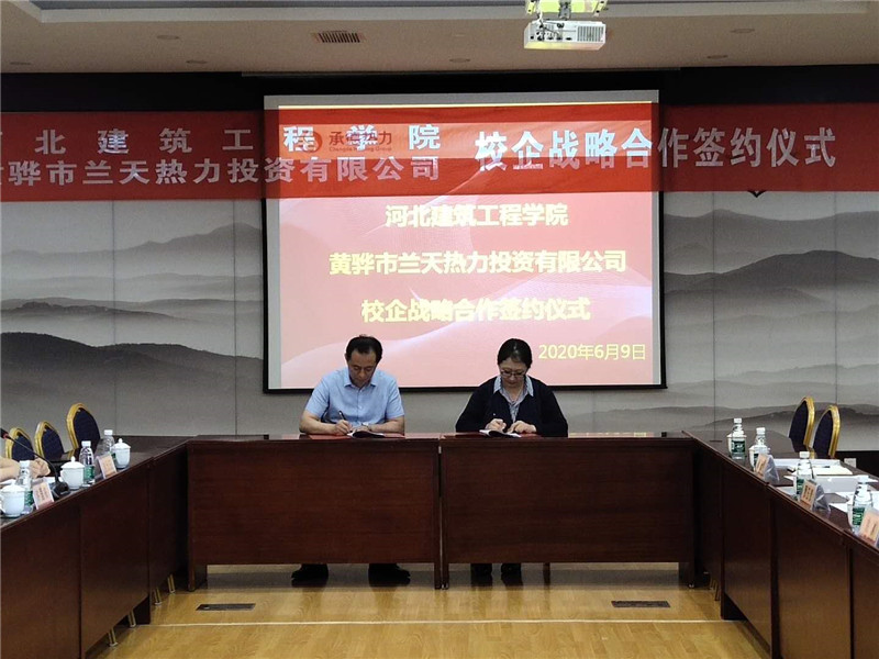 6月9日下午,2138cn太陽集團、黃驊市蘭天熱力投資有限公司校企戰略合作簽約儀式在黃驊市舉行,副校長姚冰、蘭天公司董事長郎輝分別代表雙方簽字。黃驊市人民政府副市長王友海、承德熱力集團公司副總經理許國棟,我校科研產業處處長賈玉貴、研究生處處長馬立山、信息工程學院院長劉曉群、科研產業處副處長裴宏偉等參加簽約儀式。