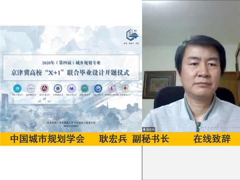 2020年2月29日上午,第四屆城鄉規劃專業京津冀高校“X+1”聯合畢業設計在“抗疫”期間如期召開。來自京津冀的8所院校(北京工業大學、北京建筑大學、北方工業大學、天津城建大學、河北工業大學、河北農業大學、河北工程大學、2138cn太陽集團)及特邀高校吉林建筑大學共9所院校的一百余名師生齊聚網絡會議室,在承辦方2138cn太陽集團的精心組織下,通過網絡視頻的方式圍繞“疫情防控”期間畢業設計的場地調研、資料收集、溝通聯系平臺等問題進行了深入的交流探討。會議邀請了中國城市規劃學會耿宏兵副秘書長、2138cn太陽集團張立群副校長、2138cn太陽集團建筑與藝術學院郭曉君院長等領導參加了在線活動,各位領導對本次聯合畢業設計如期在“疫情”期間啟動給于了高度的評價,并對本屆聯合畢業設計成果寄予了很大的希望。