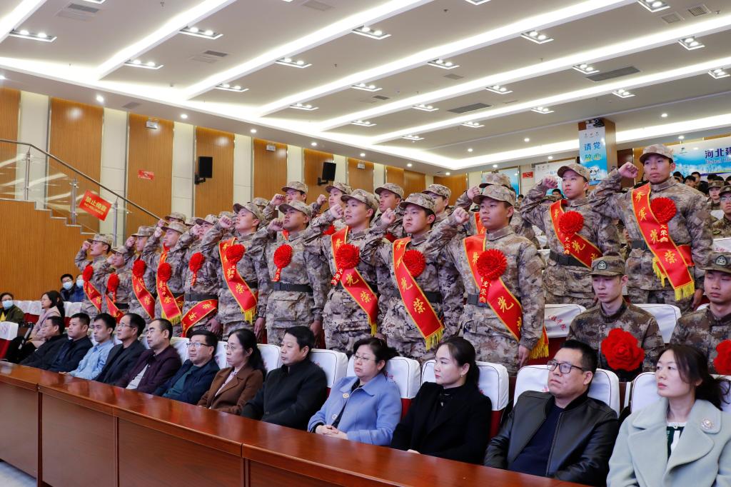 會上,電子193班房龍濤同學(xué)代表新入伍學(xué)生對各位領(lǐng)導(dǎo)、老師在應(yīng)征過程中給與的指導(dǎo)與幫助和家長的支持表示了深深的感謝,表達了對部隊的憧憬和向往,以及絕不辜負領(lǐng)導(dǎo)、老師和家長期望的決心。網(wǎng)絡(luò)221班韓欣桐代表退役復(fù)學(xué)學(xué)生對學(xué)校一直以來的關(guān)心表示感謝,并結(jié)合自身的從軍經(jīng)歷和部隊生活,寄語新入伍大學(xué)生要勇于吃苦,敢于奉獻,早立新功,報效祖國。最后,全體新入伍學(xué)生進行了集體宣誓。
