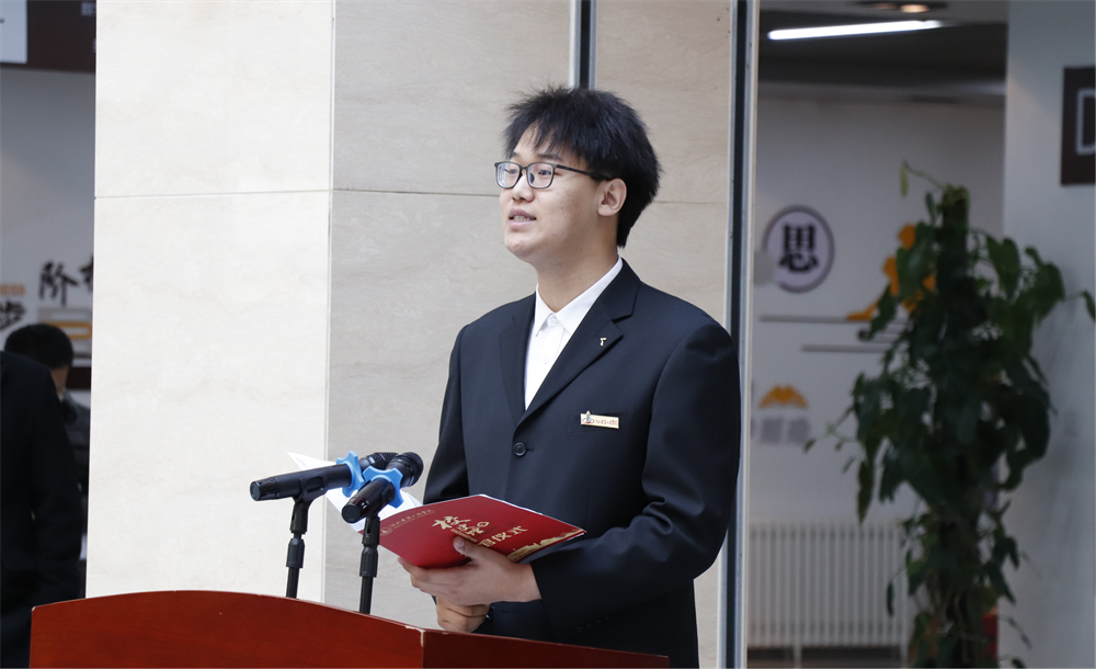 在校生代表、工215班尹簫在發言中表示,校史館的建成,標志著我校在文化建設方面又邁出了堅實的一步,他呼吁同學們走進校史館,品味校園歷史,感悟校史底蘊。