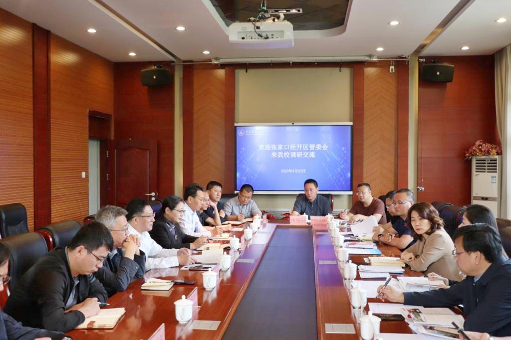 5月23日下午經(jīng)開(kāi)區(qū)管委會(huì)黨工委組織部部長(zhǎng)張麗麗來(lái)學(xué)校調(diào)研校地共建情況,經(jīng)開(kāi)區(qū)教體局、發(fā)改局、行政審批局等13個(gè)部門負(fù)責(zé)同志陪同調(diào)研。校黨委書(shū)記師涌江,副校長(zhǎng)姚冰以及黨(校)辦、組織部、人事處等8個(gè)部門負(fù)責(zé)同志參加了座談。