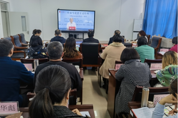強化思政課教師的理論功底。利用周二下午和周五下午時間,加強理論學習,馬克思主義學院組織干部教師認真學習了黨的二十大報告、黨章、《習近平著作選讀》等。從2023年3月開始,馬院開展了讀馬列經典活動,歷時4個月,共安排《共產黨宣言》《德意志意識形態》《關于費爾巴哈的提綱》《社會主義從空想到科學的發展》《資本論》等11部馬列經典著作。每周安排一次馬院思政課教師參加的經典導讀活動。期間,校長翁維素參加了《德意志意識形態》導讀學習,并對活動進行指導、提出要求。通過重讀馬克思主義經典,深化了習近平新時代中國特色社會主義思想學習,用經典涵養正氣、淬煉思想、升華修養、引領教學。