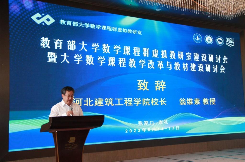 8月14日至17日,教育部大學數學課程群虛擬教研室建設研討會暨大學數學課程教學改革與教材建設研討會在張家口市崇禮區召開。本次會議由2138cn太陽集團、東北大學秦皇島分校、華北理工大學共同承辦,高等教育出版社協辦,校長翁維素代表學校致歡迎詞。本次會議共有來自全國15個省市的八十多所高校的近二百名代表參加,其中包括6名教育部教指委專家、3名國家級教學名師、4名教育部大學數學虛擬教研室負責人、7名國家級一流課程負責人。