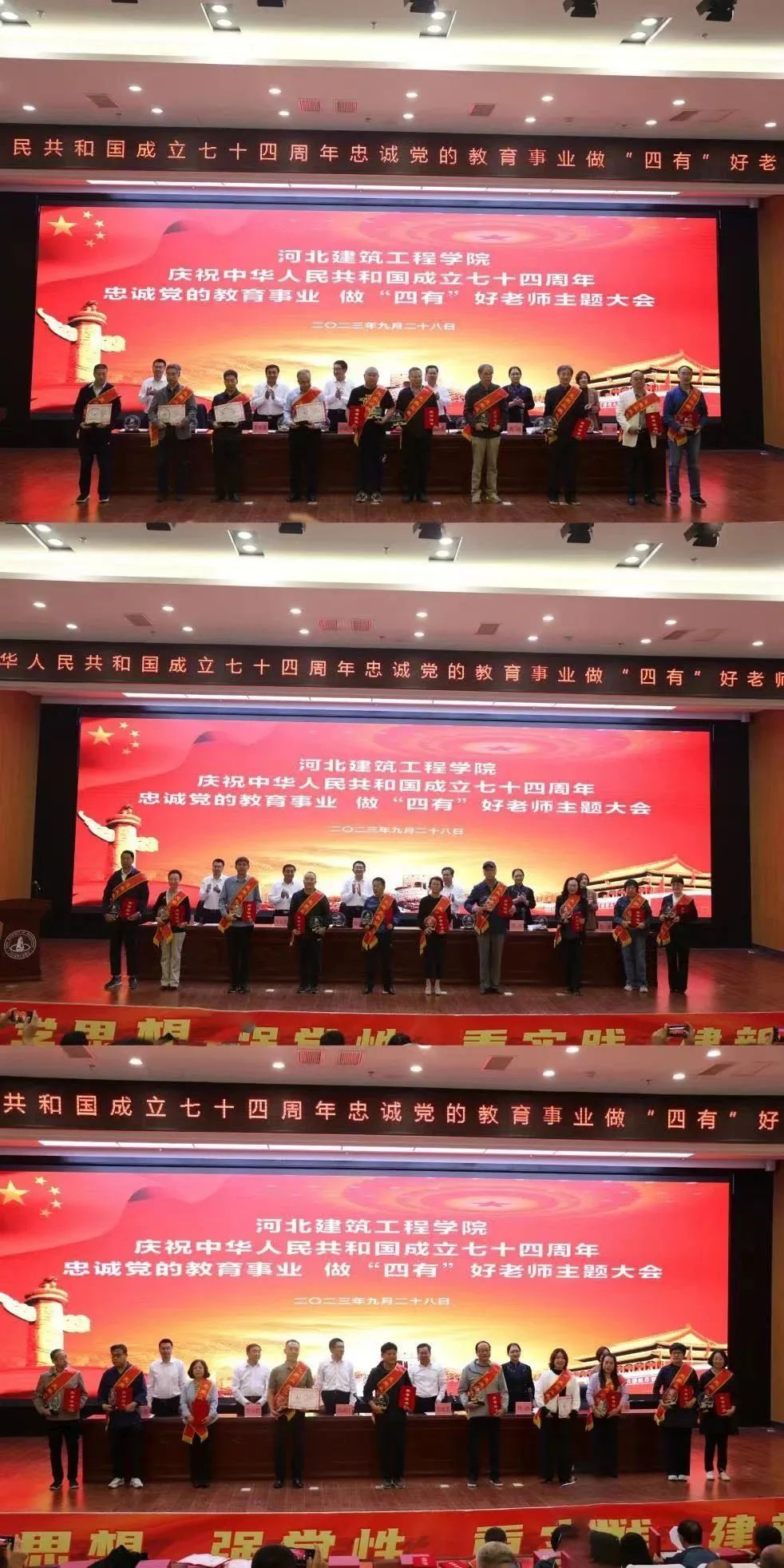 校黨委書記師涌江在會上講話,他代表學校黨委向辛勤工作在教學科研、管理服務一線的全體教職員工致以節日的問候,向受到表彰教師表示熱烈的祝賀。回顧了學校歷史及各方面取得的成就,同時指出2022年底,我校更名大學正式列入《河北省“十四五”高等學校設置規劃》,今年以來,學校全面貫徹落實黨的二十大精神,深入開展學習貫徹習近平新時代中國特色社會主義思想主題教育,加快實施“十四五”事業發展規劃,大力推進“河北建筑大學”建設工作,取得了一系列積極成效。他提出了三點意見:一是堅守立德樹人根本任務,提升思政育人實效,做新時代培根鑄魂的大先生;二是夯實師德師風堅實基礎,提升思想育人能力,做新時代身正為范的大先生;三是樹牢以學生為中心的教育理念,提升教書育人本領,做新時代常學常新的大先生。要求全體教師應該將自我實現與學校發展、國家建設、民族復興有機統一起來,邁出新步伐、闖出新路子、彰顯新擔當、展現新作為,為推進中國式現代化建設河北篇章貢獻建院力量!