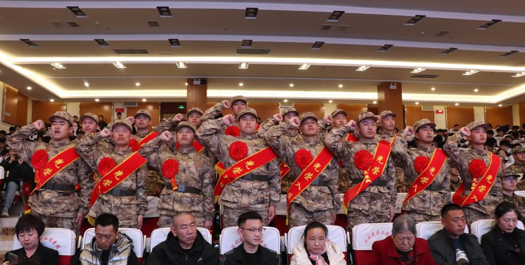 師涌江代表學校及全體師生向入伍同學表示祝賀,向一直以來支持我校征兵工作的張家口軍分區(qū)和橋東區(qū)人武部領導表示感謝。他對同學們提出三點希望:一是要堅定理想信念,牢記強國之志。以堅定的政治信仰和強烈的責任感投身到實現(xiàn)“強軍夢”之中,以軍中有我的信念詮釋軍人的榮耀與擔當。二是要錘煉過硬本領,牢記使命責任。軍旅生涯,百煉方成鋼。珍惜機會,服從命令、聽從指揮,苦中求取,練就過硬的軍事素質(zhì),強化使命擔當,不負時代重托。三是要奮勇砥礪前行,牢記母校囑托。要把建院學子艱苦樸實,勤奮進取的精神和優(yōu)良傳統(tǒng)帶進軍營,時刻銘記“求實進取”的校訓,以青春之我投身國防,為國家安寧貢獻力量。