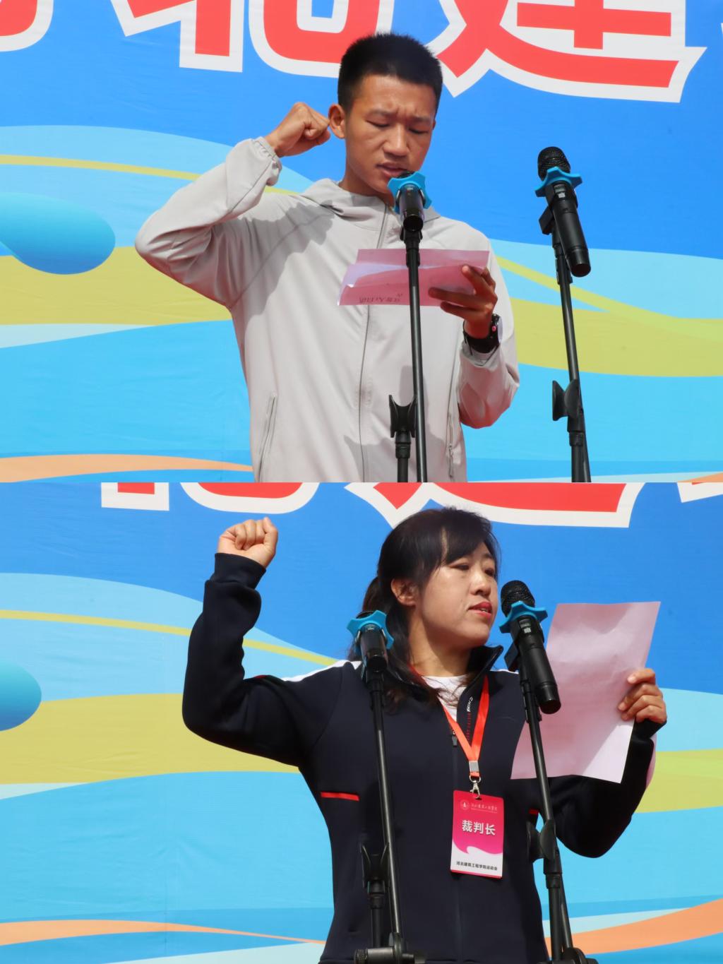 運(yùn)動(dòng)員白洪吉和裁判員劉潤(rùn)珍先后代表所有運(yùn)動(dòng)員和裁判員進(jìn)行了宣誓。