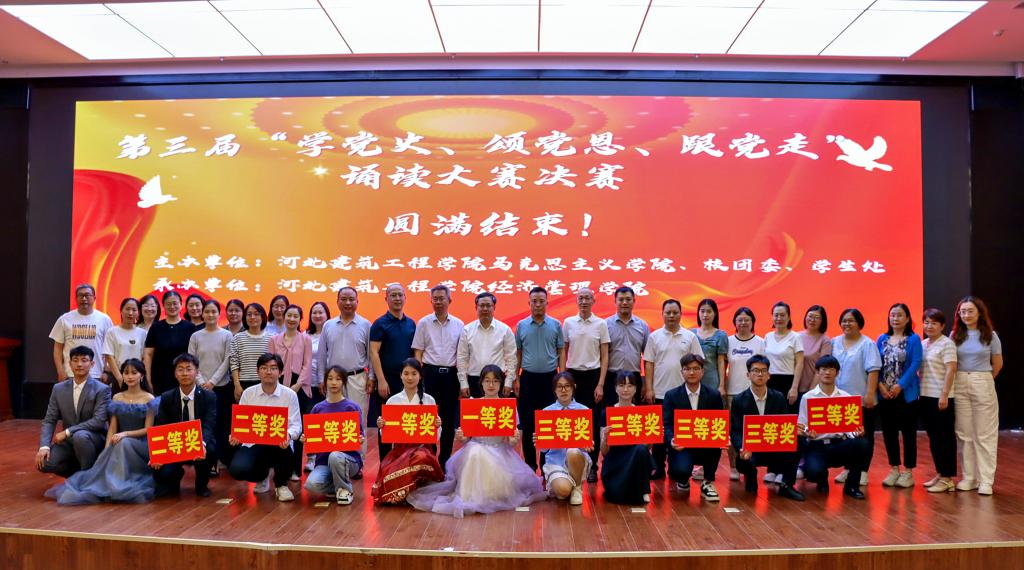 為推動黨史學習教育常態化長效化,增強大學生的歷史責任感和使命感,深化大學生理想信念教育,提升中國近現代史綱要課實踐教學效果,促進思政課“一課一品”建設,由馬克思主義學院、校團委、學生處主辦,經濟管理學院承辦的第三屆“學黨史 頌黨恩 跟黨走”誦讀大賽決賽于5月31日晚在新能源報告廳舉行。校長翁維素、黨委組織部部長肖立新、副部長郭曉波、教務處處長梁建明、學生處處長孫彬、校團委書記李曉慶、馬克思主義學院黨支部書記劉建軍、院長曹宇、經濟管理學院黨委書記杜鵬、院長葛立杰、副書記劉格以及馬克思主義學院中國近現代史綱要教研室全體專兼職教師參加了此次活動。馬克思主義學院各教研室主任擔任了本次比賽的評委。