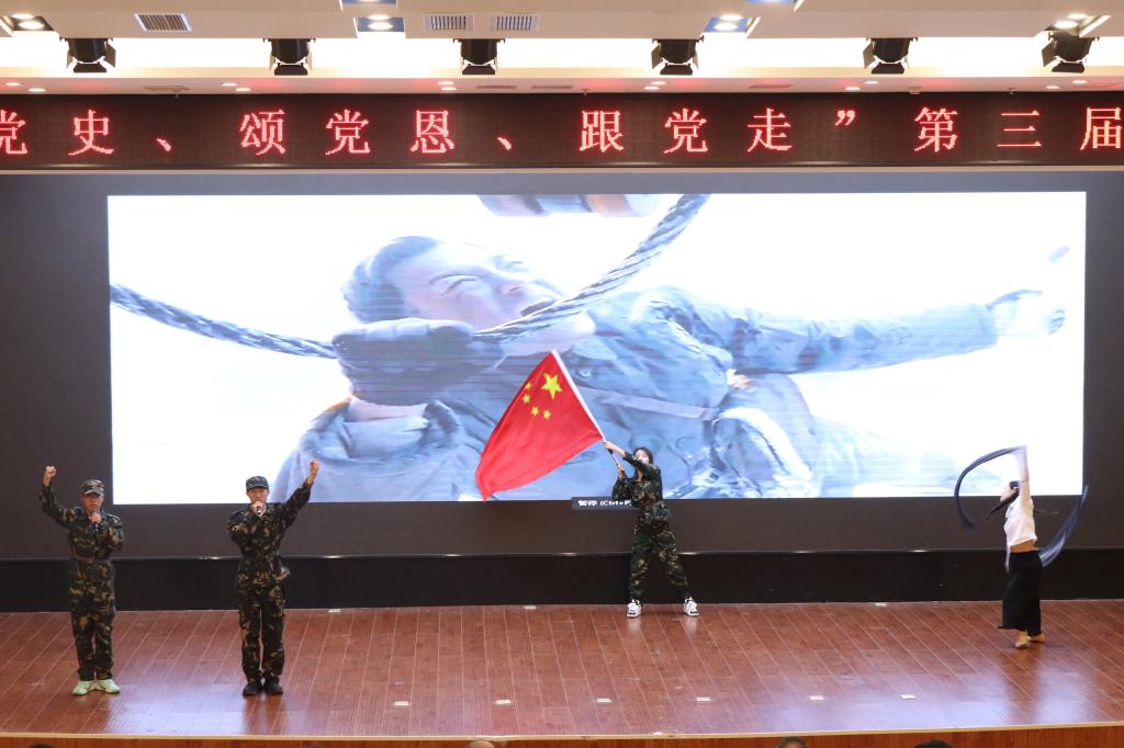 “學黨史 頌黨恩 跟黨走”誦讀大賽是馬克思主義學院《中國近現代史綱要》課程開展“一課一品”實踐教學的重要內容,從初賽到復賽再到決賽,覆蓋了我校大一年級全體學生,多部門參與組織,是我校“大思政課”建設成效的體現。