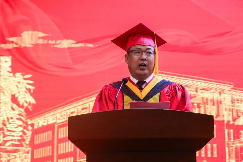 校長翁維素代表學校向順利完成學業的同學們表示最熱烈的祝賀和最美好的祝愿,向辛勤付出的各位導師及管理服務人員表示衷心的感謝!他囑托畢業研究生:一要耐住寂寞,板凳甘坐十年冷,涵養“千磨萬擊還堅勁,任爾東西南北風”的獨立人格。二要甘于平凡,立德修身再齊家,能超脫于物質得失,保持內心的平和。三要敢于創造,守正創新篤行遠,為祖國的繁榮富強、民族的偉大復興貢獻應有力量。四要追求真理,路遠不滅求索心,保持熾熱而堅定的求索之心,努力書寫更加輝煌的人生篇章。