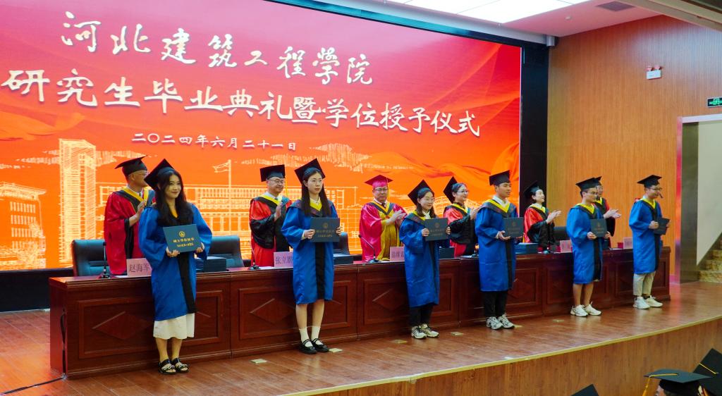 典禮上,副校長張立群、李敏、趙海軍,紀委書記徐獻彬分別宣讀了學校《關于授予2024屆研究生碩士學位的決定》《關于表彰2024屆河北省優秀畢業生的決定》《關于表彰2024年校級優秀碩士學位論文的決定》和《關于表彰2024年校級優秀碩士學位論文指導教師的決定》。校領導為全體畢業生頒發學位證書、行“撥穗禮”并為全體獲獎師生頒發榮譽證書。