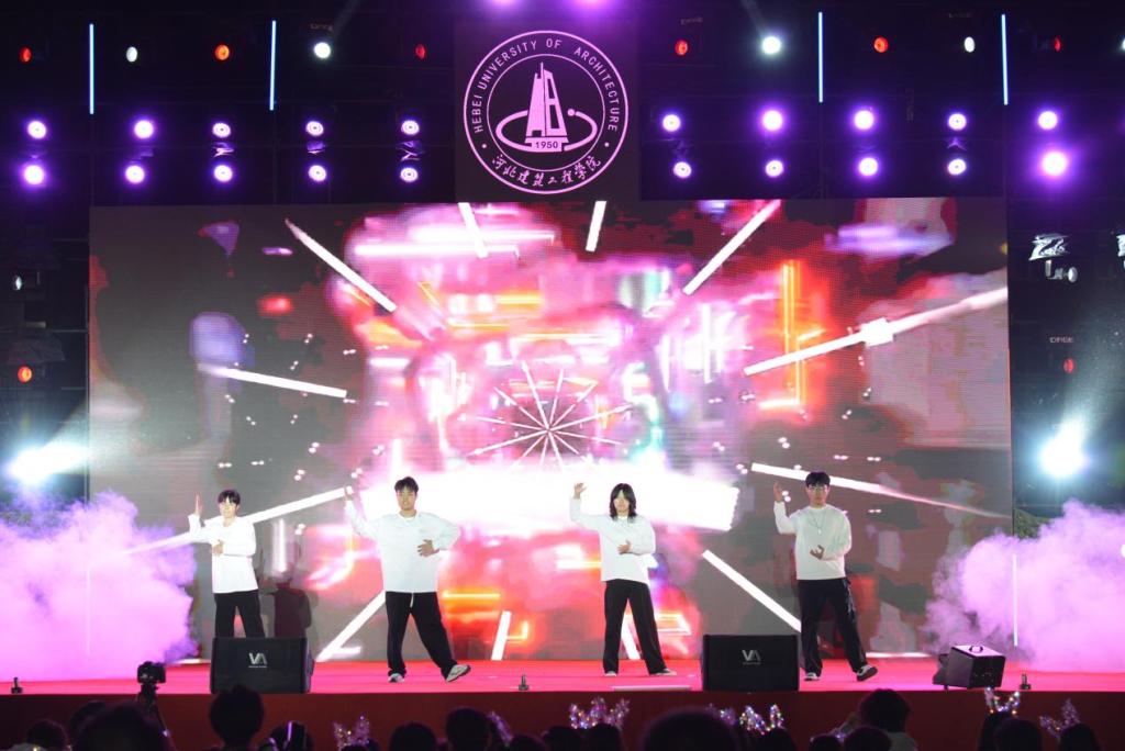 大學生藝術團帶來的《我們一起闖》率先點燃了全場氣氛,奏響了晚會的序曲。全體新生手搖熒光棒閃出多彩青春,演繹著屬于建院人的璀璨篇章。