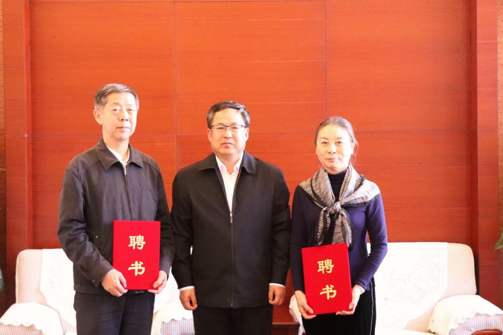 會前,校黨委書記翁維素接見了兩位老師,代表學校黨委及全體師生向兩位老師的蒞臨表示崇高的敬意和衷心的感謝。他結合紅色察哈爾介紹了學校的發展歷程和育人成果,指出學校始終堅持立德樹人根本任務、擔當鑄魂育人重大使命,充分發揮紅色資源育人功能,將愛國主義教育貫穿到教育教學全過程。他表示,革命后代來校講述紅色故事,將進一步激勵青年學生厚植家國情懷,堅定理想信念,爭做紅色基因傳承人。隨后向張旅天、趙京婭兩位老師頒發了“愛國主義教育客座導師”聘書。