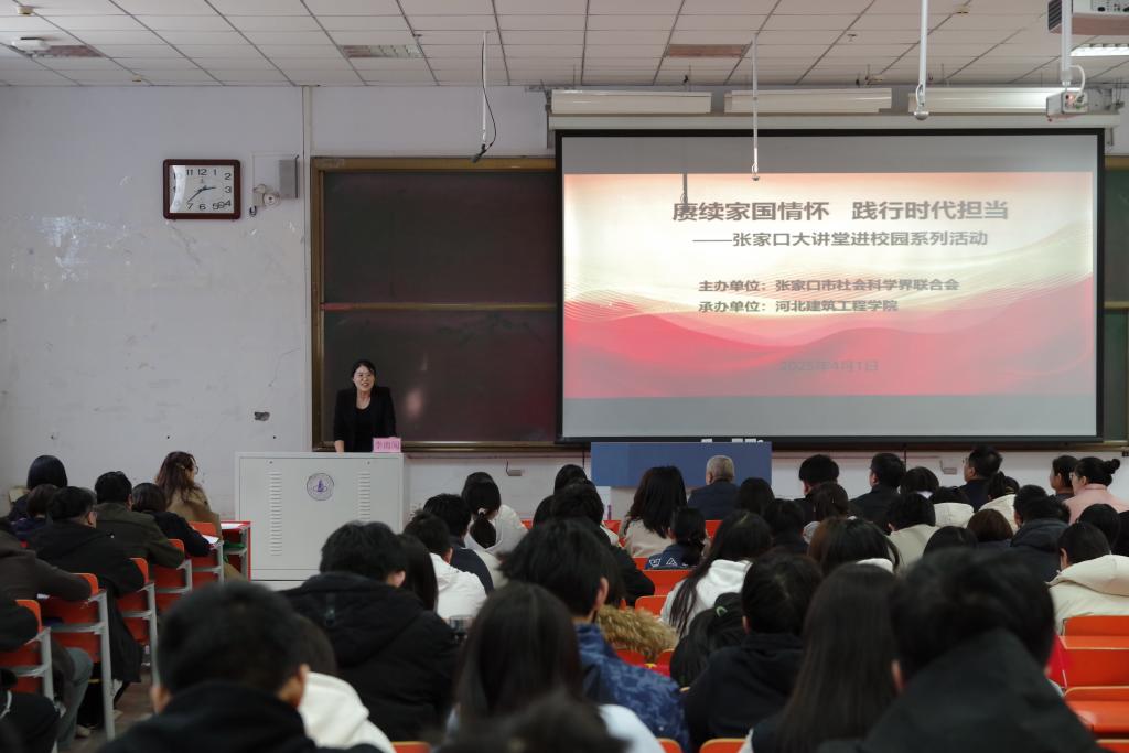 4月1日,由張家口市社科聯(lián)主辦、我校馬克思主義學(xué)院承辦的“賡續(xù)家國情懷 踐行時(shí)代擔(dān)當(dāng)”張家口大講堂進(jìn)校園系列活動(dòng)在我校舉行。校黨委副書記尹萬玉、市社科聯(lián)一級(jí)調(diào)研員王若彬及馬克思主義學(xué)院院長張文海出席活動(dòng),我校馬克思主義學(xué)院全體思政課教師、青年馬克思主義學(xué)院學(xué)員及第二課堂選課的共計(jì)300余名師生代表聆聽了講座。
