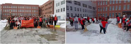 2021年11月,張家口入冬的第一場(chǎng)的暴雪,不僅給校園帶來(lái)了銀裝素裹的美麗,也檢驗(yàn)了土木工程學(xué)院培養(yǎng)大學(xué)生新時(shí)代勞動(dòng)精神的成果。大雪未停,學(xué)生干部和志愿者紛紛主動(dòng)要求進(jìn)行掃雪活動(dòng),因?yàn)閰⑴c人數(shù)眾多,學(xué)院分批次,分人員、分時(shí)間進(jìn)行了具體安排,對(duì)冰雪覆蓋區(qū)域較多,清掃難度較大的土木樓和部分公共區(qū)域進(jìn)行集中清理,保證師生學(xué)習(xí)和生活出行安全。學(xué)生們淌著熱汗、凍得通紅的臉龐與身穿的紅馬甲成為張家口寒冷冬天最美的風(fēng)景。此次的掃雪活動(dòng)充分展示學(xué)生們甘于奉獻(xiàn)、勞動(dòng)光榮、友愛互助的勞動(dòng)精神。