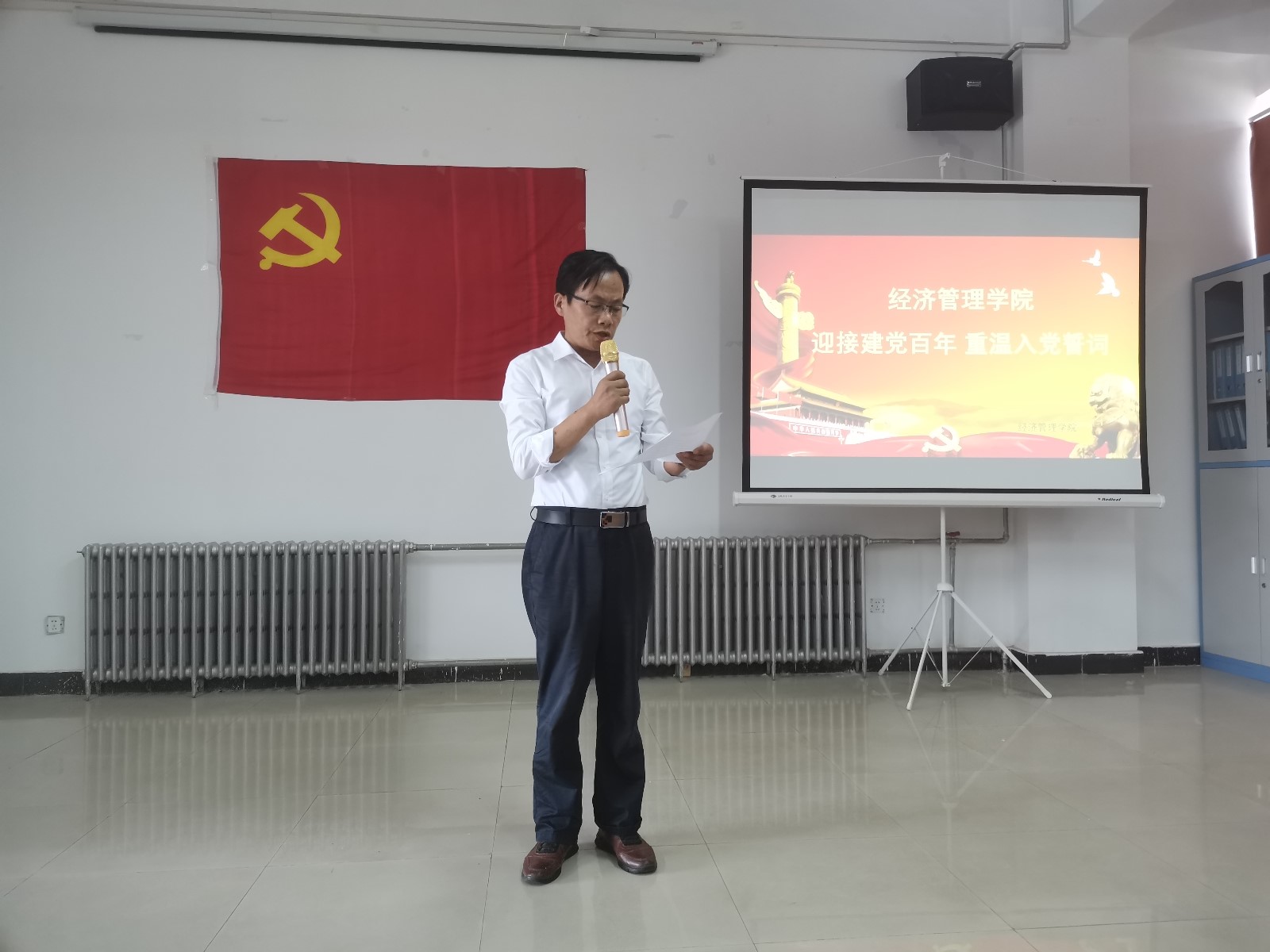 經濟管理學院于7月6日下午3點30分在崇德樓C403會議室舉辦“迎接建黨百年,重溫入黨誓詞”宣誓儀式,學院班子成員、黨員教師和學生預備黨員共計有80余人參加儀式。宣誓儀式由學工辦主任孫賀娟主持。