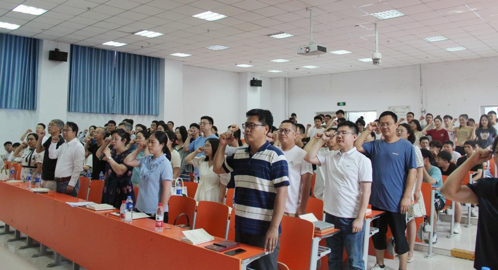 會前,全體黨員面對莊嚴的黨旗,高舉右拳,重溫入黨誓詞,表達不忘初心、牢記使命的堅定決心。