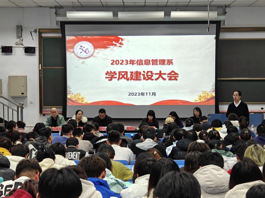 11月28日下午,信息管理系在明德樓110教室召開了2023年學風建設大會。信息管理系全體老師及學生300余人參加了會議,大會由信息管理系團總支書記史海嫣主持。