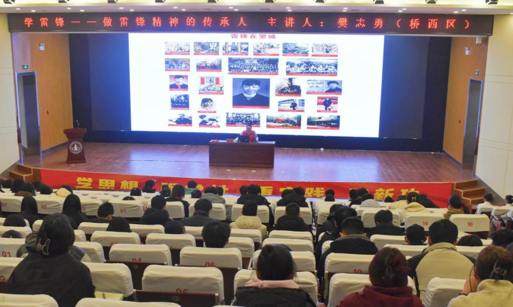 為進一步弘揚和傳承新時代雷鋒精神,鼓勵和引導青年學生積極踐行學雷鋒志愿服務活動,唱響新時代雷鋒之歌,3月6日下午,校團委特邀請張家口雷鋒精神志愿者服務隊黨支部書記樊志勇為青年學生作題為《學雷鋒—做雷鋒精神的傳承人》的主題講座。