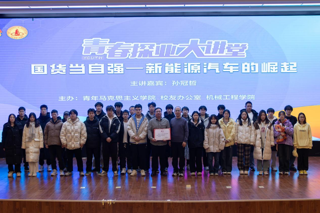 12月19日,我校在新能源交流中心舉辦了青春探業大講堂活動。我校2006屆優秀本科畢業生、吉利品牌研究院項目管理總監孫冠哲校友以《國貨當自強—新能源汽車的崛起》為主題與青年大學生面對面交流分享。校團委及青馬學院學員等師生代表450余人參加了活動?;顒佑汕嗄犟R克思主義學院、校友辦公室、機械工程學院聯合舉辦。