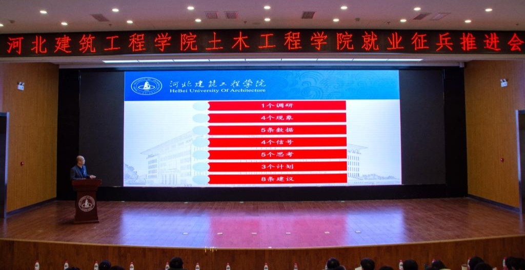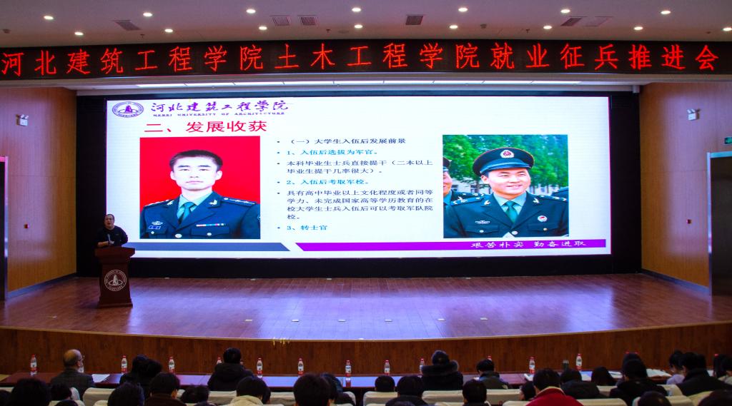 12月27日,土木工程學院于新能源交流中心召開了土木工程學院就業征兵推進會。本次會議特邀請校團委書記李曉慶、學生處征兵工作辦公室科長陳龍為學院師生進行相關政策及形勢的分析講解。土木工程學院黨委書記鐘曉春、院長董捷、黨委副書記賈紹寧、學院專兼職輔導員以及全體畢業生參加了此次大會。