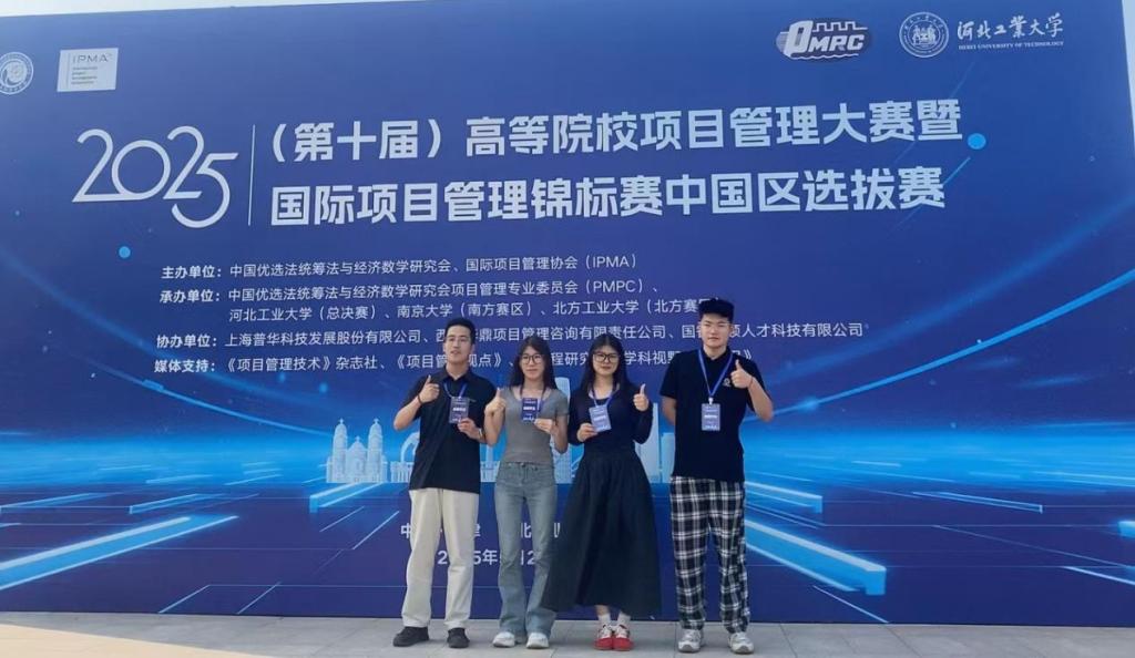 5月25日,由中國優(yōu)選法統(tǒng)籌法與經(jīng)濟數(shù)學(xué)研究會、國際項目管理協(xié)會(IPMA)聯(lián)合主辦的“2025(第十屆)高等院校項目管理大賽暨國際項目管理錦標賽中國區(qū)選拔賽總決賽”在河北工業(yè)大學(xué)圓滿收官。在本屆賽事中,我校經(jīng)濟管理學(xué)院研究生代表隊表現(xiàn)優(yōu)異,在全國總決賽中榮獲“卓越項目管理團隊獎”一等獎、個人一等獎和二等獎各1項,充分展現(xiàn)了我校研究生在項目管理領(lǐng)域的扎實專業(yè)素養(yǎng)、團隊協(xié)作能力和實踐創(chuàng)新能力,在全國眾多知名高校中脫穎而出,載譽而歸。