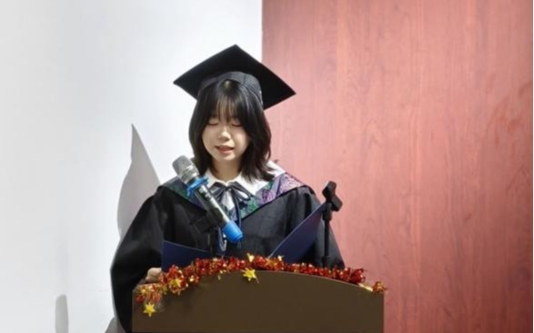 典禮伊始,王赫代表信息管理系致辭。他深情回顧了同學們在大學四年的成長歷程,對大家取得的成績表示祝賀,并寄語畢業生要志存高遠、銳意進取,將個人理想融入民族復興的時代洪流中,勇擔時代使命。隨后,肖丹宣讀學位授予名單,為現場增添了莊重氛圍。